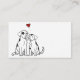 Teilen Sie die Informationen, die Sie über Sie oder Ihr Unternehmen benötigen, mit dieser skurrilen und niedlichen Hundefreunde-Visitenkarte, die das Bild von zwei gepunkteten Hunden zeigt, die mit einem Herz über dem Kopf sitzen. Macht eine großartige Visitenkarte für Hunde- und Tierfreunde oder werben Sie für Ihr Hundetraining oder andere Tiergeschäfte! Verwendung zum Ausgraben von Trainer, Hundezüchter, Tierarzt, Tierrettung, Hundeschwalker oder Boarding-Zwingskarte.