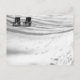 Zwei schneebedeckte Holzstühle bis zu ihren Sitzplätzen sitzen im links oberen Teil des Schwarz-Weiß-Fotos. In der Mitte und darüber durchqueren lange Baumstamm-Schatten den Rahmen horizontal und tauchen in sanften Kurven entlang des schneebedeckten Geländes ein. Unregelmäßige Schneebälle verschütten den rechten Abhang im Vordergrund. Das Körnchen schwarz-weiß Film fügt der Winterszene eine Textur hinzu. 35 mm, Schwarz-Weiß-Foto. Copyright © 1992 Claire E. Skinner. Alle Rechte vorbehalten.