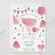 Kawaii und Niedliche Wassermelone Pink Girl 2. Geburtstag Party Einladung. Das Design umfasst Wasserfarben-Wassermelonen, Wassermelonen-Fahnen, Wassermelonen-Herz, Wassermelonen-Samen, "Zwei in einer Melone!" und eine Aquarellenskala mit Wassermelone. Unser süßes kleines Mädchen ist zwei in einer Melone!