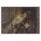 In diesem Design ist ein Gemälde des englischen Malers George Elgar Hicks aus der Viktorianischen Zeit (1824-1914) zu sehen. Es zeigt zwei junge Mädchen, die nebeneinander schlafen, während sie in einem Zugwagen auf der Zuhause auf der Reise Erholung. Sie sind in edlen Kleidern gekleidet und haben Rose und andere Blume auf ihren Runden. Vielleicht waren sie kürzlich bei einer Familienhochzeit oder einem anderen großen Ereignis. Die beiden Mädchen schlafen friedlich zusammen: Sie wirken entspannt und entspannt. Eines der Mädchen hat langes blondes Haar, das in den Curlen ist, während das andere Mädchen braune Haare hat. Das Originalwerk wurde 1873 gemalt.