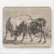 Dieses Design zeigt eine Illustration des niederländischen Künstlers Paulus Potter (1625-1654), der sich auf die Darstellung von Tieren spezialisiert hat. Dieses Kunstwerk zeigt zwei Stiere, die miteinander kämpfen. Sie sperren Hörner aggressiv, um um Dominanz zu konkurrieren. Kämpfe zwischen Bullen beinhalten oft Kopfknötchen und Körperschläge. Der Künstler hat die Bestien aus nahen Vierteln deutlich beobachtet, da er ihre körperliche Form so deutlich abbildet, wie ihre Hufe, das scheue Fell, lange Schwänze, abgesenkte Köpfe und weite Augen.