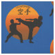 Zwei Karate-Kämpfer mit aufgehende Sonne und Wort Karate in der japanischen Sprache in den orange und schwarzen Farben