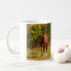 Zwei Kastanienpferde gegen Herbstlaub. Eine einzigartige Tasse für alle Pferdenthusiastes.