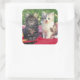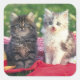 Zwei Kätzchen sitzen auf einem rot gefärbten Blume Quadratischer Aufkleber