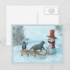 Zwei Katzen und eine Snowman Postkarte