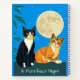 Journal in einer Illustration einer schwarz-weißen Tuxedokatze und eines orangefarbenen Tabby, sitzen unter einem Sternenhimmel mit Vollmond. Umgeben von einer silbernen Vegetation schaffen sie eine ruhige Nachtszene. Der spielerische Text "A Purfect Night" fügt der Illustration viel Lustigkeit hinzu.
