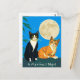 Postcard in einer Illustration einer schwarz-weißen Tuxedokatze und eines orangefarbenen Tabbons, sitzt unter einem Sternenhimmel mit Vollmond. Umgeben von einer silbernen Vegetation schaffen sie eine ruhige Nachtszene. Der spielerische Text "A Purfect Night" fügt der Illustration viel Lustigkeit hinzu.