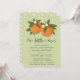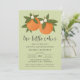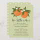 Diese zauberhafte Dusche mit zwei Säuglingen bietet ein handgezeichnetes/gemaltes Orangendesign mit kleinen Blüten auf einem individuellen Farbhintergrund (in hellgrün dargestellt). Stilvolle Typografie lautet: "Zwei kleine Süssen sind unterwegs!" Die Rückseite enthält ein einfaches, passendes orangefarbenes Muster. Ideal für die Mama erwartet Junge / Mädchen Zwillinge! Kunstwerk/Illustration von Tracey Khalei / Orabella Prints.