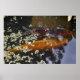 Ein goldener Koi und ein roter und schwarzer Koi in einem Teich