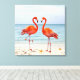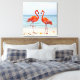 Zwei lebhafte rosa Flamingos an der Leinwand