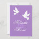Doppelseitig einfach 2 weiße Liebesvogel / Tauben mit lila Bändern Hochzeit RSVP. Passen Sie Ihre persönlichen Daten an.
