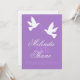Doppelseitig einfach 2 weiße Liebesvogel / Tauben mit lila Bändern Hochzeitseinladung. Entworfen für eine feierliche Hochzeit, die von dem Paar gehostet wird, um gewartet zu werden. Passen Sie mit Ihren eigenen Daten an, um UAWG zu erhalten. Ist für die Arbeit mit UAWG siehe unten.
