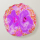 Zwei Lila und heiße Pink Pum Crazy Hibiskus in Rot Rundes Kissen