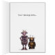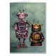 Zwei lustige niedliche kleine rostige Roboterfreunde auf dieser lustigen Gruß- oder Geburtstagskarte, schauen sie Spaß! Glückliche Bots! Von einer Illustrationshand gezeichnet vom Künstler Paul Stickland, Buchillustrator und -autor der Kinder.