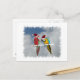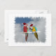 Ein blau-goldener Ara und ein grüner Flügel tragen Weihnachtsmannmützen auf Produkten in der Weihnachtsabteilung für "Feiertage und besondere Anlässe"