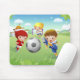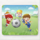 Zwei Mädchen und ein Junge, der Fußball spielt Mousepad