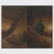 Dieses Design zeigt ein Gemälde des deutschen Künstlers Caspar David Friedrich aus dem 19. Jahrhundert (1774-1840). Es zeigt zwei menschliche Figuren in einem dunklen Wald. Sie sind von einem helleren, pastellfarbenen Himmel silbrig geschmückt. Der Himmel deutet darauf hin, dass die Zeit um die Dämmerung ist, da der wachende Halbmond nah zu sein scheint, sich einzustellen. Die dunklen Vorder- und Lichthintergründe schaffen einen scharfen Kontrast und erzeugen einen wirksamen künstlerischen Effekt. Die dunklen Wurzeln und Äste eines toten entwurzelten Baumes können auch im Vordergrund gesehen werden, im Gegensatz zum Himmel. Die zerklüfteten Zweige und die krassen Kontraste scheinen ein bedrohliches Umfeld für die Figuren zu schaffen, die gesamte Atmosphäre erinnert an den imposanten gotischen Stil, der ursprünglich im Mittelalter zu sehen war, aber hier in der Romantik-Zeit wiederbelebt wurde. Die Figuren selbst sind in dunklen Farben gekleidet und mit etwas formalen Kleidungsstücken versehen, die auch ihren Status als Oberklassehotel bestätigen. Das Kunstwerk vermittelt Spiritualität in der Natur und die Gegenwart des Erhabenen, die für Caspar David Friedrich ein wichtiges Thema sind. Der ursprüngliche deutsche Titel des Gemäldes lautet "Zwei Männer in Betrachtung des Mondes", was "Zwei Männer, die den Mond verkörpern" bedeutet.