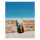 Zwei Männer überblicken die Mauer in Richtung blau Poster