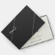 Ein Gästebuch mit einem Design von zwei Bungalows, stehend auf beiden Seiten eines Goldenen Herzens. Das Buch hat eine cremefarbene, blaue und braune Farbe. Dieser Artikel ist Teil eines Hochzeitsvortrags-Set, das eine Hochzeitseinladung, eine rsvp-Karte und vieles mehr beinhaltet. (Die Goldelemente im Set sind Imitat, Gold und nicht Goldfolie.) Zwei Grooms Male Wedding Cream Blue LGBTQ Gast Book Holidayday Design | ©Melissa Patton - Designer