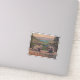 Dieser Vinyl-Aufkleber hat zwei niedliche Chipmunks, die auf einem Baumstumpf mit Berghang und See sitzen.