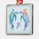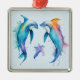 Abstrakte Abbildung mit zwei niedlichen blauen Delphinen mit orangefarbenen und lila Spritzern