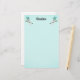 Dieses Schreibpapier ist hellaquablau mit zwei niedlichen weißen Geistern, die in goldgekleideten blauen Oberhüten mit schwarzen Rohren gekleidet sind, mit extravagantem Goldschnitt, überzogen von goldenen Schädeln. Passen Sie Ihren Namen oben mit der Vorlage an.