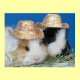 Dieses Guinea Schweinekopster zeigt zwei charmante Guinea Schweine, die Heu mit kleinen Strohhüten essen. Copyright Cool Cavy Guinea Pig Shop