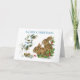 Aufmachung eine Vintage Illustration, die zwei niedliche Häschen mit Stechpalme ganz herum im Winterschnee und in den Wörtern "frohe Weihnachten" mit einem kundengerechten Gruß nach innen zeigt.