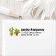 Adressetiketten mit einer skurrilen Abbildung mit 2 fröhlichen Kakteen, die in ihren eigenen Blume sitzen. Jeder von ihnen hat seine eigenen einzigartigen Ausdrücke, die lächeln und glücklich aussehen.