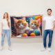 Adorable flauschige Kätzchen spielen mit farbigen Garn-Kugeln und Planeten im Raum AI ART von minx267