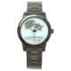 Palmen am Ufer, unisex Uhren Design mit anpassbaren Uhren Bänder. Zwei miteinander verflochtene Palmen am Ufer des Ozeans bilden das Bild der gemischten Medien.