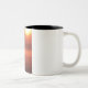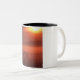 Zwei Pferde am Sonnenuntergang Zweifarbige Tasse