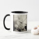 zwei Pferde außerhalb eines Stalles Schwarzweiss Tasse