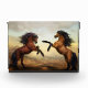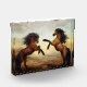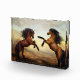 Zwei wilde Pferde, die dort schwarze seidene Mähne aufziehen, die im Wind wehen. www.giftideas505.com