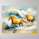 Zwei Pferde galoppieren durch das flache Wasser Poster