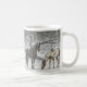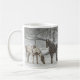 Zwei Pferde in Schneeweide im sanften Schneefall Kaffeetasse