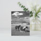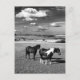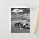 Atmosphärisches Schwarz-Weiß-Foto von zwei Pferden auf den Feldern Set gegen einen dramatischen Himmel