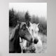 Dieses Poster mit Schwarz-Weiß-Fotografie-Plakat zeigt die ruhige Schönheit zweier Pferde, die in einer malerischen Landschaft stehend sind. Die einfarbigen Farbtöne heben die Details und die Texturen hervor und machen sie zu einem bemerkenswerten Stück rustikaler Wandkunst. Ideal für die Bauerndekoration, die inspirierte Inneneinrichtung des Westerns oder für jeden, der die Kunst des Reitsports schätzt, verleiht dieses Design jedem Raum zeitlosen Charme. Ideal für Wohnzimmer, Schlafzimmer oder Büroräume, bringt es den Geist des Landes in Ihre Zuhause. Dieses Poster ist mit hochwertigen Details bedruckt und bildet ein wunderschönes Statement-Stück und ein nachdenkliches Geschenk für Tier- und Naturliebhaber.