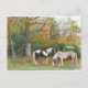 Postkarte - Herbst im Wald. Zwei Sinti und Roma Pferde und ein Wagen. Von Jean Morning Star.