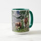 Zwei Pferde und Waldtiere Foto trinken Tasse