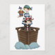 Zwei niedliche, skurrile Piraten, die in ihrem Piratenschiff absegeln. Vollständig mit Papagei! Kunstwerk von Trina Clark