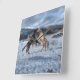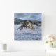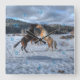 Zwei Ranch-Pferde spielen im Winterschnee IV Quadratische Wanduhr