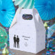 Eine elegante klassische Gastgeschenk Hochzeit mit zwei Bungalows. Die Silhouetten geben diesem schönen Gunst-Box-Schild ein romantisches Gefühl. Diese minimalistische Szene ist perfekt für Ihre moderne romantische Hochzeit. Dieser Look wird in jeder Hochzeitszeit, im Frühling, im Sommer, im Herbst oder im Winter gut laufen. Ideal für eine moderne Hochzeit und perfekt für eine klassische Hochzeit!