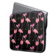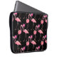Zwei rosa Flamingos auf schwarzem Hintergrund. nah Laptopschutzhülle