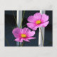 Zwei rosa Kosmos durch das Porch Railing Postkarte