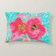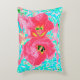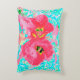 Zwei Rosy Red Coral Pum Crazy Hibiskus auf Aqua Dekokissen