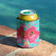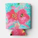 Zwei Rosy Red Coral Pum Crazy Hibiskus auf Aqua Dosenkühler