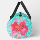 Zwei Rosy Red Coral Pum Crazy Hibiskus auf Aqua Duffle Bag