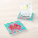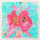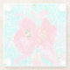 Zwei Rosy Red Coral Pum Crazy Hibiskus auf Aqua Glasuntersetzer