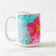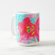 Zwei Rosy Red Coral Pum Crazy Hibiskus auf Aqua Kaffeetasse